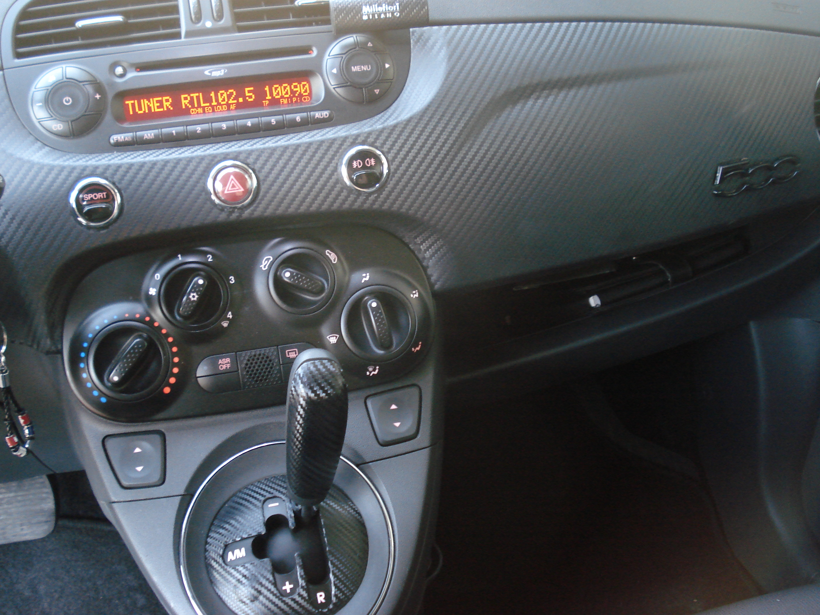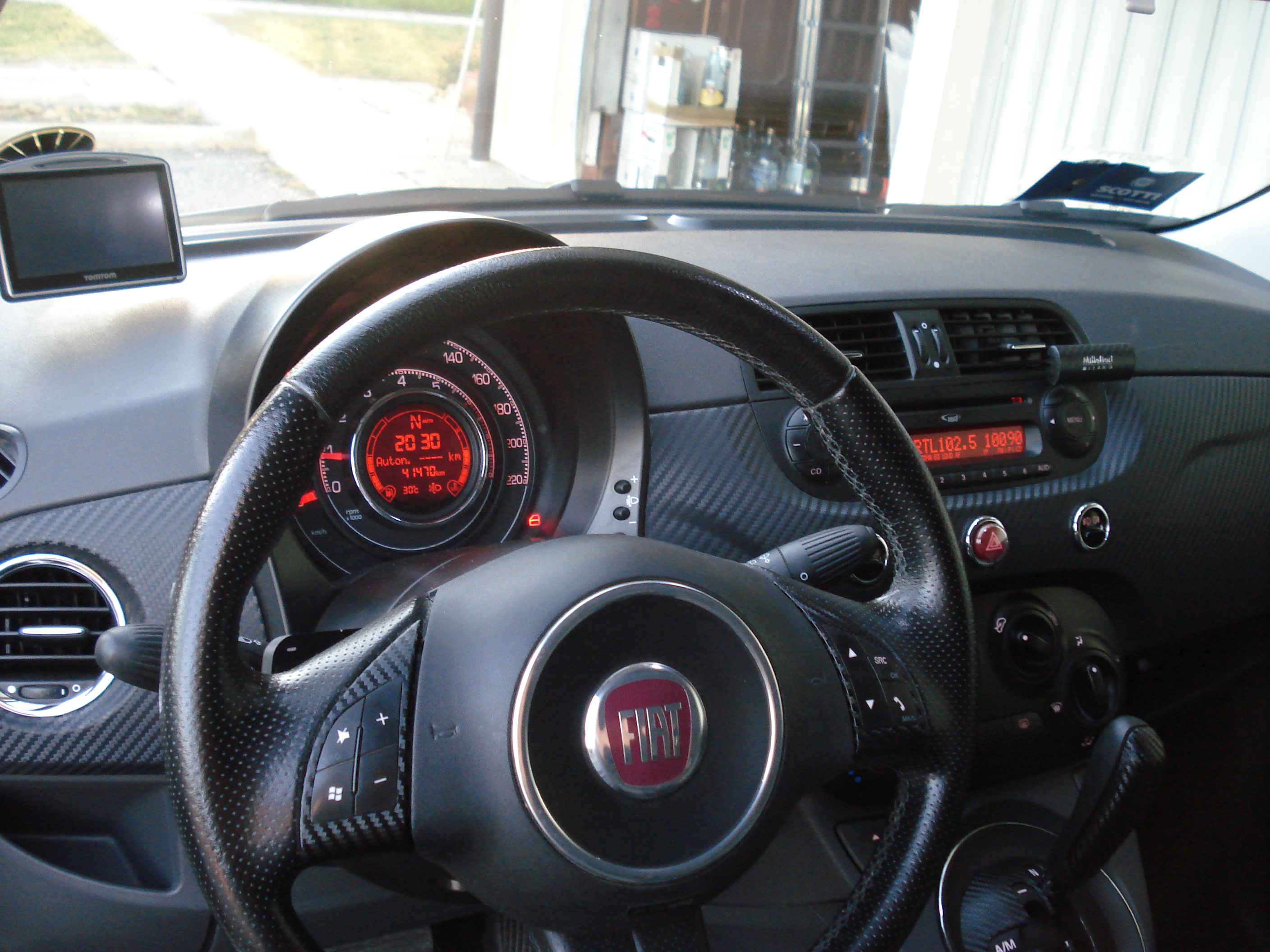 _ Cambio dualogic con paddle al volante,comandi al volante,tasto "Sport" ,comandi vocali,Usb,Bluethoot,Mp3 _ Sensori di parcheggio posteriori _ Interni in pelle/tessuto e battitacco sport 500 _ Assetto sport,spoiler portellone,appendici aerodinamiche paraurti anteriore/posteriore,minigonne e fasce paracolpi con targhetta 500 _ Cerchi in lega da 16" con 195/45 verniciati nero lucido e pinze freni rosse _ Calotte specchietti,fregi anteriori/posteriori,cornici logo,maniglione sopratarga,maniglie portiere,montanti portiere e placchetta 500 e logo 500 su plancia tutto verniciato nero lucido _ Distanziali ruote ant.- post. da 16" _ Vetri posteriori privacy e tetto in vetro nero _ Fari Xeno,posizioni bianche/azzurrate,luci abitacolo e targa a led _ Scarico artigianale a doppia uscita _ Gruppi ottici anteriori/posteriori e frecce laterali bruniti _ Plancia,selettore cambio,placchetta leva cambio,cornici comandi volante in carbon look _ Spazzole tergi Bosch aerotwin e antenna corta in alluminio nera _ Sistema di navigazione TomTom go 530 |