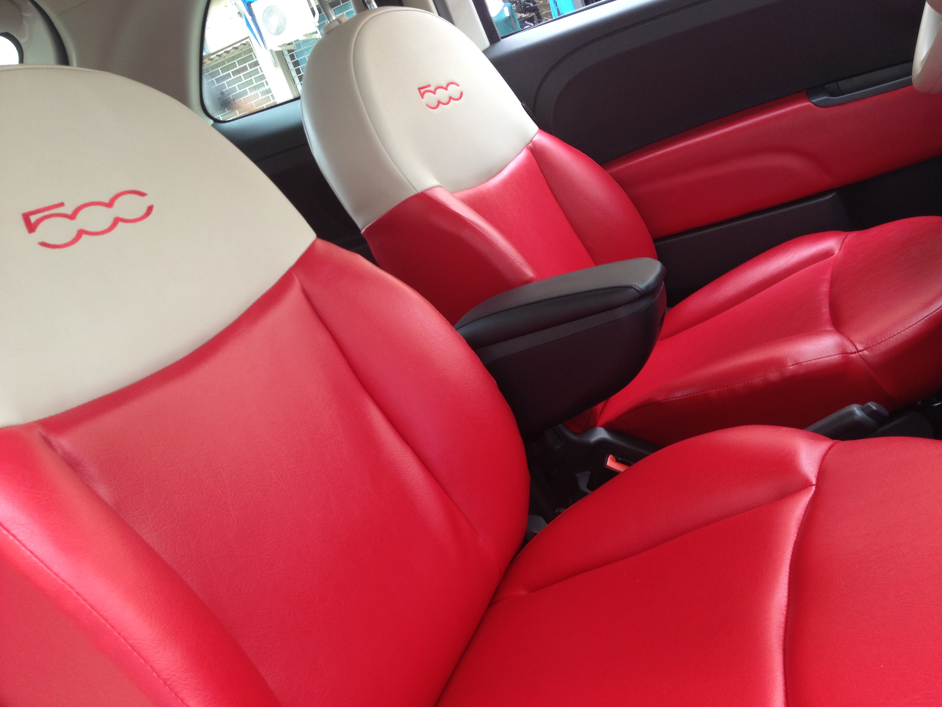 Finalmente oggi in un ritaglio di tempo sono riuscito a postare le foto della nuova tappezzeria in pelle con loghi 500 in tutti e quattro i posti con il rivestimento dei tapponi laterali! Sono molto soddisfatto del risultato........