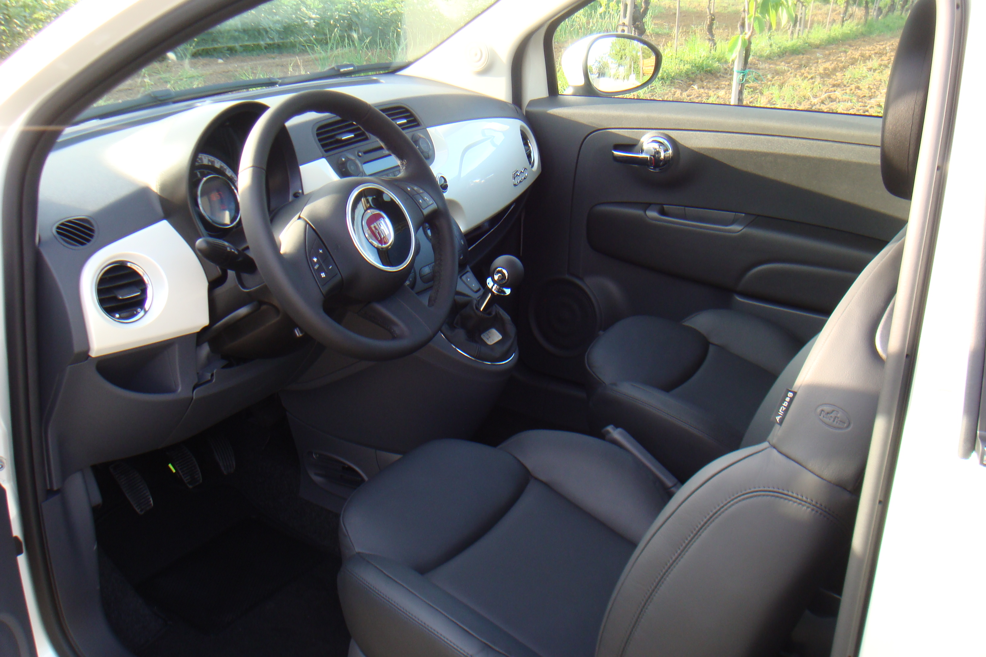 Fendinebbia Climatizzatore automatico Tetto in vetro fisso con tendina parasole Sistema Blue&Me Fasce paracolpi in colore vettura con targhetta "500" Pomello leva cambio in pelle Cristalli posteriori e lunotto scuri ESP+ASR, MSR, HBA e Hill Holder |