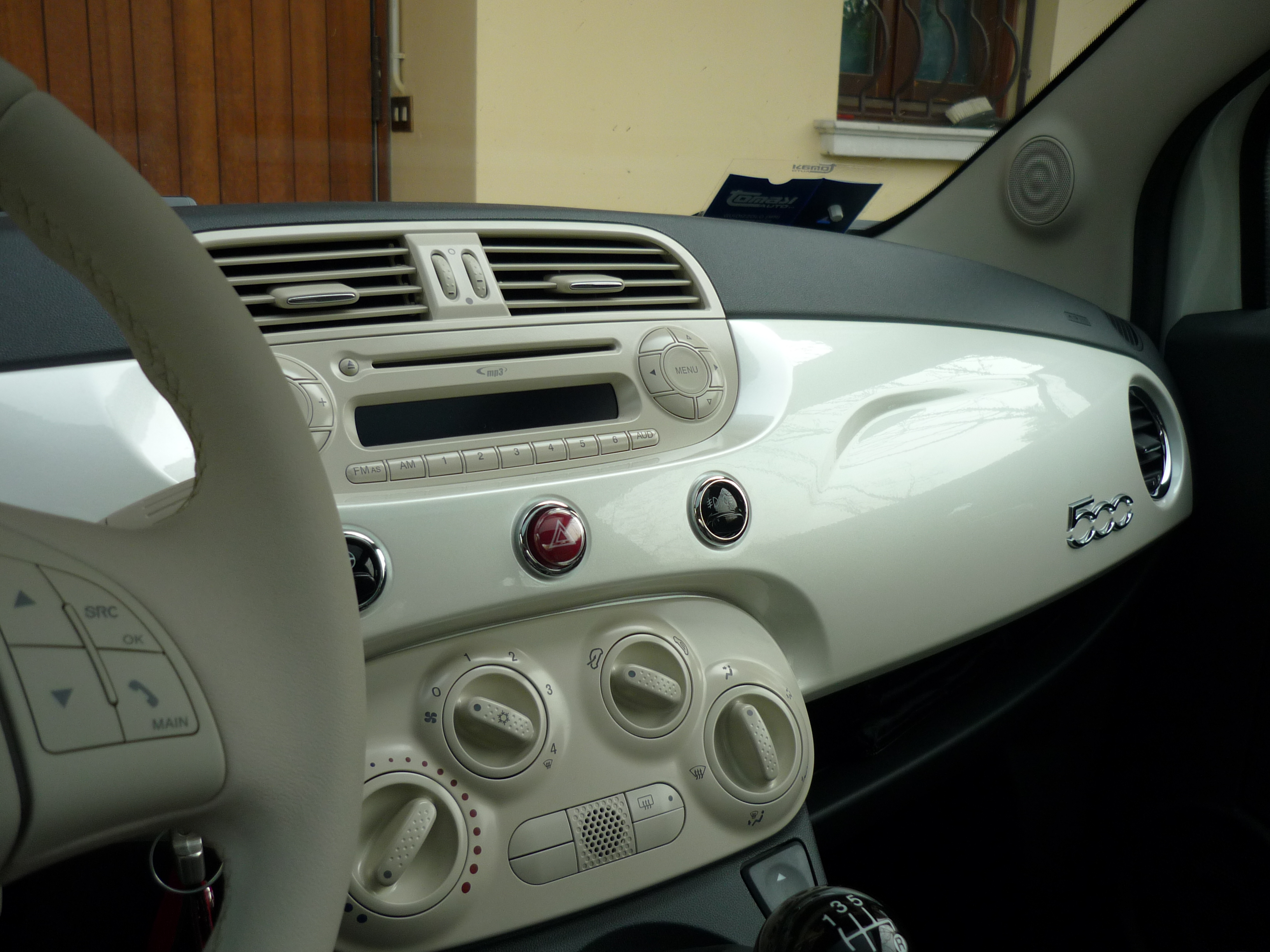 Fendinebbia Climatizzatore manuale Tetto in vetro fisso con tendina parasole Sistema Blue&Me Fasce paracolpi in colore vettura con targhetta "500" Calotta specchi cromata |