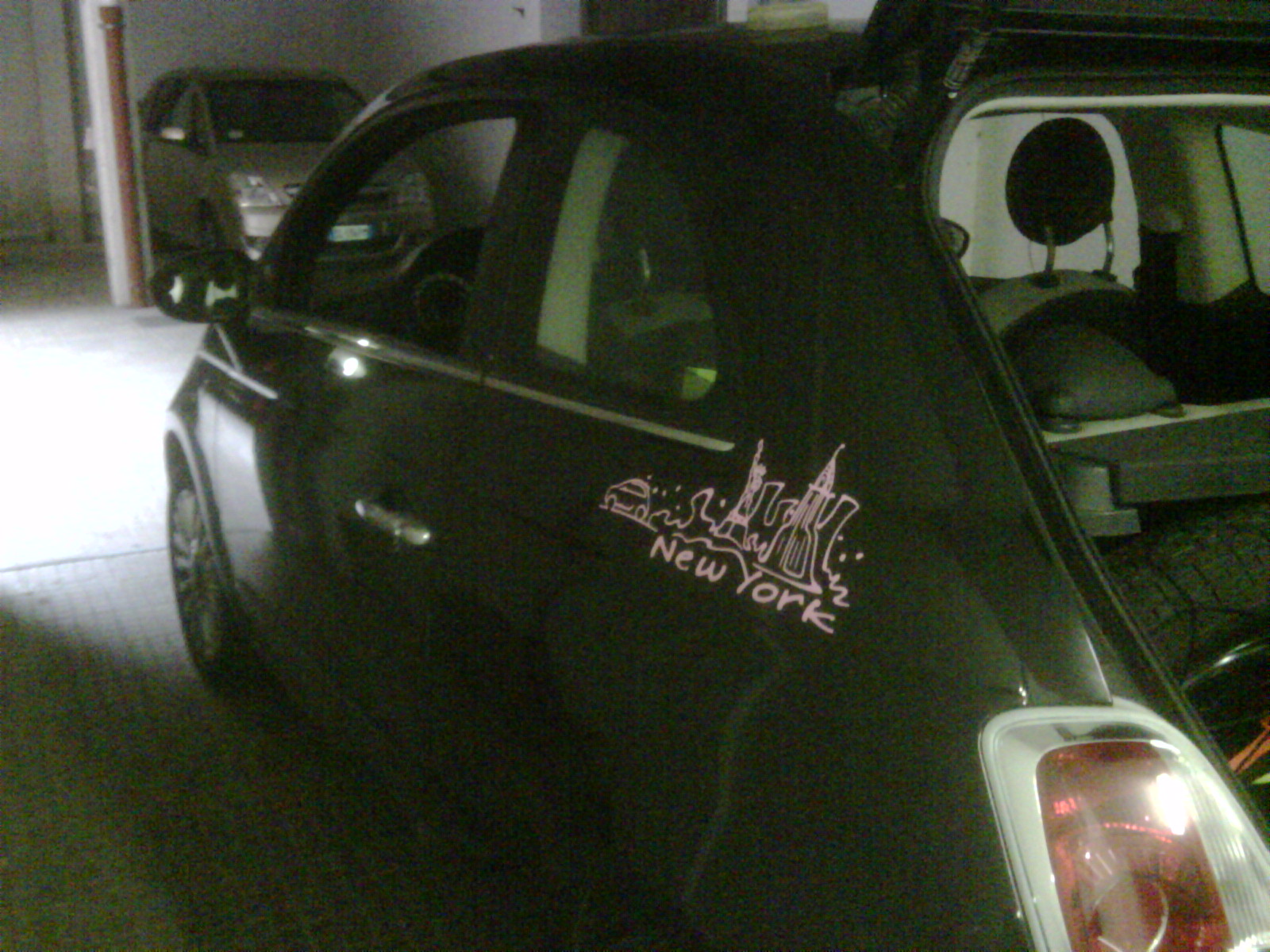targhetta new york su fasce paracolpi pomello rosa black scritta 500 interna personalizzata con swaroski rosa impianto gpl adesivi rosa by lupodesign |